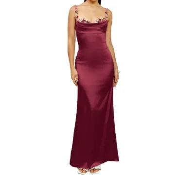 One of the standout features of this dress is its alluring backless design. This beautifully highlights your curves and adds a sultry touch while maintaining a refined balance with the adjustable floral spaghetti straps, accentuating your neckline elegantly. The cowl neck subtly showcases your collarbone, adding an extra layer of sophistication. Designed with a bodycon fit that gently flows into a flattering maxi length, the Colysmo Dress ensures comfort and ease of movement, perfect for hours of wear during any formal occasions.