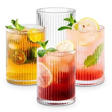 Combler Cocktail Glasses, Ribbed Glassware Set of 4 for Drinks & Gifts