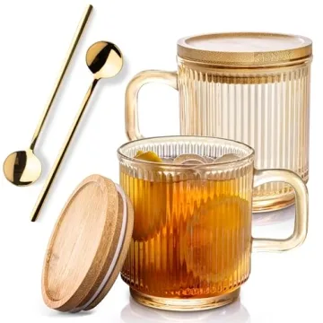 Introducing the **Combler Glass Coffee Mugs with Lids**, an exquisite set designed to enhance your coffee experience with both style and functionality. This impressive collection features two beautifully embossed glass mugs, each adorned with a vintage ribbed pattern that adds a touch of elegance to your coffee rituals. Accompanied by golden spoons and sustainable bamboo lids, this set not only embodies sophistication but also reflects a commitment to eco-friendly living. Made from premium borosilicate glass,...