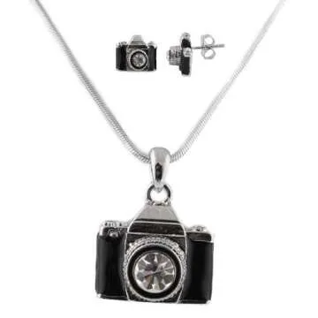 Made from high-quality materials, this necklace and earring set is not just stylish, but also durable and comfortable for daily wear. The intricately designed camera pendant offers a touch of personality, making it a conversation starter wherever you go. Each piece in the set is lightweight, allowing for prolonged use without discomfort, and the adjustable chain ensures a perfect fit for every neck size.