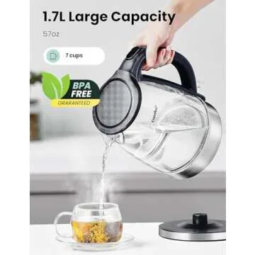 COMFEE' Glass Electric Tea Kettle & Hot Water Kettle Electric, 1.7L Electric Kettle with LED Indicator, 1500W Fast Boil, Auto Shut-Off and Boil-Dry Protection