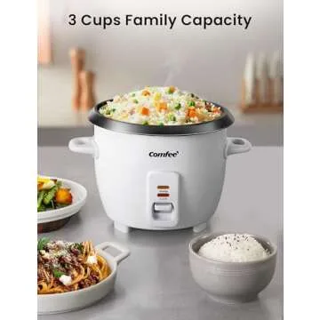 COMFEE' Rice Cooker, 6-Cup Cooked/3-Cup Uncooked, Removable Non-Stick Bowl, for Soups, Stews, Grains&Oatmeal, One Touch, White