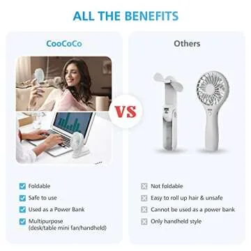 COMFIER Portable Fan,Small Personal Fan, Mini Handheld Fan,3 Speeds Rechargeable Hand held Fan with Power Bank, Foldable hand Fan for Outdoor,Sports,Travel,Women,Men,Kids