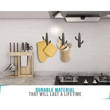 Comfify Set of 3 Hooks Cast Iron Cactus Double Wall Mounted Hooks/Hangers - Decorative Wall Mounted Hooks for Coats, Bags, Towels and More - w/Screws and Anchors Included - Brown