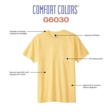 If you're on the hunt for the ideal mix of comfort and style, look no further than this premium quality T-shirt crafted from a wonderfully soft, garment-dyed fabric. The Comfort Colors Adult Short Sleeve Pocket Tee (Style G6030) not only showcases a robust double-needle collar and armholes but also features a twill-taped neck and shoulders that enhance both durability and comfort. With its single-needle left chest pocket, this tee combines functionality with flair, perfect for casual outings...