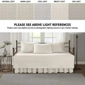 Comfort Spaces Daybed Cover - Luxe Double Sided-Quilting, All Season Cozy Bedding with Bedskirt, Matching Shams, Kienna Ivory 75"x39" 5 Piece