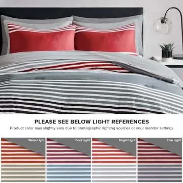 The comforter showcases a stunning design featuring vibrant red and grey stripes with a chic solid grey reverse, creating a striking visual appeal that seamlessly complements any bedroom decor. With multiple shades of grey throughout the ensemble, this bedding set is perfect for those who appreciate a modern and masculine touch. Enjoy an enhanced sleeping experience with the generous filling that envelops you in soothing warmth, making it ideal for those late-night study sessions or cozy movie marathons.