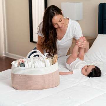Comfy Cubs Diaper Caddy Organizer- Large Portable Baby Diaper Caddy Nursery Storage Bin and Car Travel Basket - Tote Bag with Dividers for Diapers & Wipes, Blush