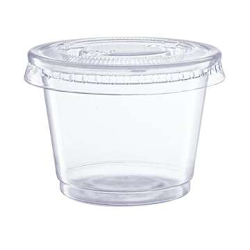 Comfy Package [100 Sets - 1 oz.] Plastic Disposable Portion Cups With Lids, Souffle Cups