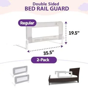 ComfyBumpy Toddler Bed Rail Guard | Bed Rails for Kids, Twin, Full, Queen & King Size Bed - Adjustable Bed Rail for Toddlers - Swing Down Baby Bed Side Rail - Gray, Regular (35.5" x 19.5"), Pack of 2