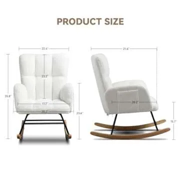Show more Introducing the COMHOMA Nursery Rocking Chair, the epitome of comfort and style for your home. This beautifully upholstered glider rocking chair not only provides a soothing rocking motion but also boasts a sophisticated white design that complements any nursery, living room, or bedroom décor. Crafted from a sturdy steel and solid wood frame, this chair guarantees impressive stability and durability, allowing you to relax in confidence. With its thoughtful features, including anti-slip pads for smooth rocking and protection against floor scratches, it's the ideal choice for parents and nursing moms seeking a serene space.