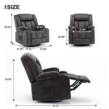 COMHOMA Recliner Chair Massage Rocker with Heated 360 Degree Swivel Lazy Boy Recliner Single Sofa Seat with Cup Holders for Living Room (Gray)