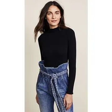 commando Women's Ballet Mock Neck Thong Bodysuit, Black, One Size