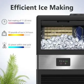 Commercial Ice Maker Machine 70LBS/24H with 10LBS Storage Bin, Stainless Steel Under Counter Large Ice Machine, 2 Water Inlet Modes, Freestanding and Built in Ice Maker for Bars, Home and Offices