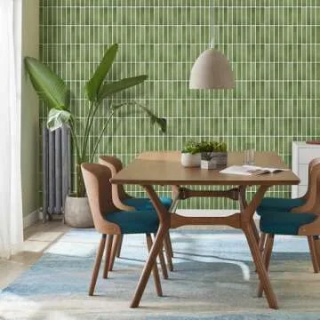 Show more Elevate your home decor effortlessly with the Commomy 10 Pcs Matte Peel and Stick Backsplash. Designed to bring a touch of elegant, verdant warmth to any living space, this 11.8"x11.8" tile is perfect for those who crave sophistication without the hassle of traditional installation. Crafted from premium ultralight PVC, these tiles are not only lightweight but also incredibly flexible, making them ideal for any DIY decor projects. The rich matte finish enhances the visual appeal while providing a simple, yet stunning backdrop in kitchens, bathrooms, or living areas.