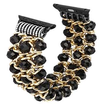 Compatible for Apple Watch Bling Beaded Bracelet Band,Fohuas Luxury Crystal Beads Pearl iWatch 38mm 40mm 41mm 42mm 44mm 45mm Fashion Metal Chain Elastic Stretch Jewelry Bangle Strap for Women Girl