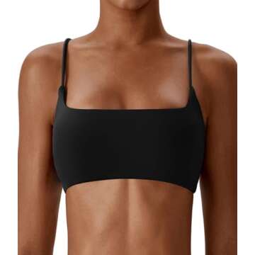 Comper Women's Sports Bras Wirefree Racerback Workout Bras Sexy Thin Straps Yoga Sport Bras with Removable Pads(Black-S)