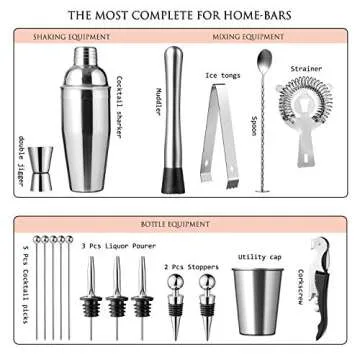 Introducing the **Freeya Complete 21-Piece Bartender Kit**, the quintessential solution for cocktail aficionados and aspiring bartenders alike. This top-tier cocktail shaker set embodies both form and function, crafted to elevate your home mixology sessions to professional standards. Including essential tools like a 24 oz cocktail shaker, a stylish mojito muddler, and a sophisticated mixing spoon, this kit provides everything you need to mix perfect cocktails. Each piece is made from high-quality,...