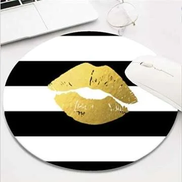 Show moreElevate your gaming and office experience with our Computer Gaming Mouse Pad, designed with both functionality and style in mind. Crafted from high-quality waterproof rubber material, this mouse pad provides a smooth surface for optimal mouse sensor precision whether you’re gaming or working. The chic black and white stripes, adorned with fashionable gold lips, add a touch of sophistication to any desk setup. Measuring 8 inches in diameter, it's the perfect size for your home office or gaming station, ensuring that it doesn’t take up too much space while providing ample room for mouse movement.