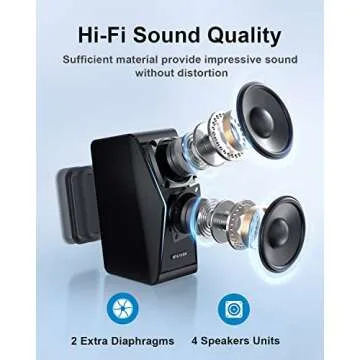 One of the standout features is the real diaphragm technology, which enhances bass richness and depth by pushing more air into the speaker’s cavity. This fusion of technology promises a sound clarity that includes pounding bass, clear midrange, and high treble with minimal distortion.