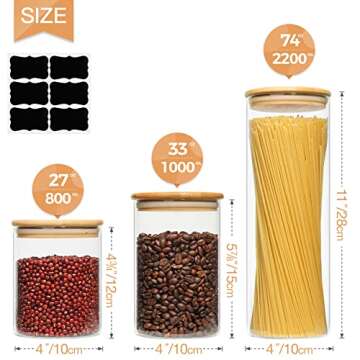 ComSaf Glass Container Food Storage Set of 3, Sealing Glass Jar with Airtight Bamboo Lid,Pasta Containers for Pantry, Storage Canisters for Noodles Flour Cereal Sugar Tea Spice Coffee Beans
