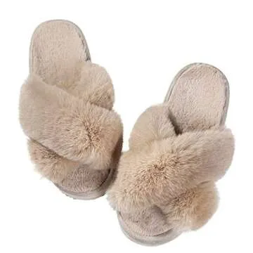 Show more Indulge your feet in a world of comfort with our cozy Faux Fur open-toe slippers. Designed with a sumptuous fuzzy plush lining, they provide an unmatched level of softness that keeps your feet warm and cozy throughout the day. The luxurious material not only feels great but also adds a stylish touch to your casual wear. Perfect for those lazy weekends or busy mornings, you can effortlessly slip these slippers on thanks to their convenient slip-on closure. Whether you're lounging at home or stepping outside to grab the mail, these slippers have got you covered.