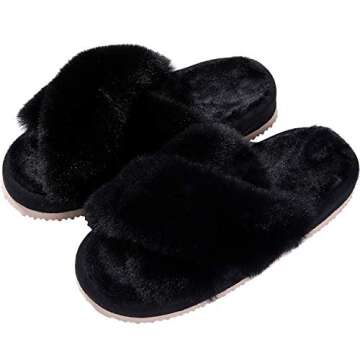 Comwarm Women's Cross Band Fuzzy Slippers – Fluffy Open Toe House Shoes