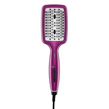 Equipped with nylon, silicone, and ceramic bristles, this brush glides effortlessly through your hair, enhancing manageability while styling. Its high-heat capacity of 400 degrees and three adjustable settings make it suitable for all hair types, whether thick or thin, ensuring instant heat-up and effective styling every time.