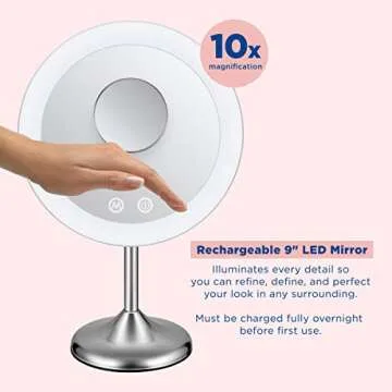 With a stylish 9-inch diameter and a sleek satin nickel finish, this mirror not only enhances your beauty routine but also adds a touch of elegance to your decor. The included USB cable and adapter make it easy to recharge the mirror, providing up to 2 hours of stunning illumination. Whether you’re at home or on the go, this mirror is designed for convenience, as it can be used wirelessly for ultimate flexibility. This mirror will not only transform how you apply makeup but will also make you feel empowered in your daily routine.