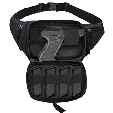 Concealed Carry Pistol Waist Bag - LarKoo Tactical Conceal Carry Pistol Bag Fanny Packs Handgun Holster Pouch with Bottle&Gun Holder Fits 1911 Glock etc