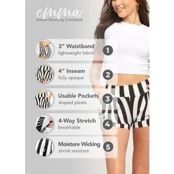 Conceited Shorts for Women with Pockets - Harem Style - Pleated - Soft and Flattering - Essential - Beetlejuice - Small - Medium