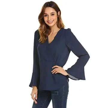 Concep Women Loose Casual Long Flare Sleeve Chiffon Layered Top T-Shirt Blouse (White, S)