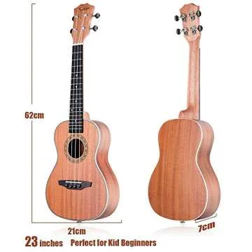 Concert Ukulele, 23 Inch Soprano Ukulele for Beginners, Waterproof Resistance Mahogany Ukuleles, Beginner Ukulele with Free Video Ukulele Lessons, Gig Bag, Tuner, Strap, String and Picks