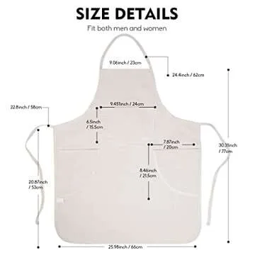 The CONDA apron features a loose fit that accommodates all body types, complete with long waist ties for incredible adjustability. With dimensions of 31 inches by 27 inches, this apron is perfect for everyone—from petite chefs to plus-sized artists! The sturdy neck strap ensures durability and comfort, allowing you to wear it for extended periods while you channel your inner professional, whether you are at home, in the garden, or at a local artisan market.