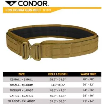 Condor LCS Cobra Gun Belt (Coyote Brown, Small/Medium: 34.5"-38.5" Long, Waist 30"-32")