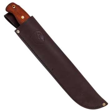 The machete comes with a handcrafted welted leather sheath for safe and convenient carrying.