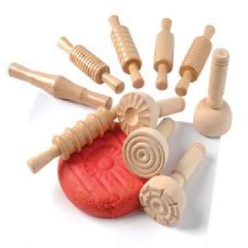 Constructive Playthings Classic Wood Dough Tools, Utensils for Play Dough or Clay, Set of 10