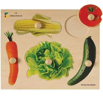 Constructive Playthings Toddler Puzzles, Includes Fruits, Vegetables and Animals Photo Puzzles, Preschool Toys, Knobbed, Wood, Multicolor (Set of 4), Great Gifts for 2-3 Years Old Toddler