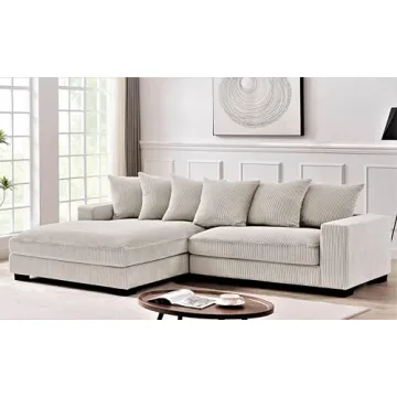 Show moreIntroducing the Container Furniture Direct Luxe Oversized Two-Piece Sectional Couch, the perfect addition to any living room that craves both style and comfort. Measuring an impressive 102.4 inches, this L-shaped sofa with a chaise is generously sized to accommodate family and friends while transforming the ambiance of your space with its modern design. Upholstered in soft ivory corduroy fabric, this sectional offers a luxurious feel and visual appeal that seamlessly blends with various decor styles. The solid wood frame ensures that this couch is not only beautiful but also built for longevity, serving to make moments of relaxation and entertainment enjoyable for years to come.