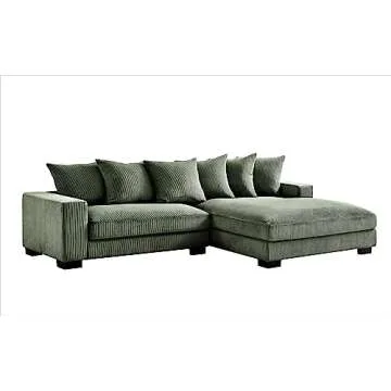 Container Furniture Direct Luxe Oversized Two-Piece Right Facing Sectional Couches for Living Room, 102.4-Inch L Shaped Sofa with Chaise, Upholstered with Corduroy Fabric, Dark Green