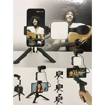Content Creator Kit, for YouTube, TicToc, Vlogging, Video Making Accessories, Light, Microphone, Tripod, Handle, Holds a Cellphone or Camera, Black