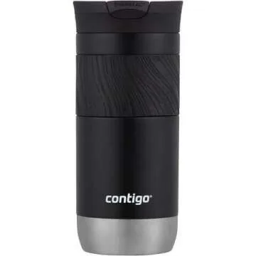 Show moreThe Contigo Byron 2.0 Stainless Steel Travel Mug with SNAPSEAL Lid and Grip in a sleek Licorice color is the ideal companion for your daily commute or outdoor adventures. This 16oz travel mug is designed with cutting-edge THERMALOCK double-wall stainless steel insulation that keeps your beverages hot for up to 6 hours and cold for up to 12 hours, ensuring that you always enjoy your drink at the perfect temperature. Featuring a leak-proof SNAPSEAL lid, this travel mug offers superior convenience by preventing accidental spills, making it perfect for on-the-go use. The thoughtfully designed one-piece lid allows for easy one-handed drinking without the hassle of misplacing lids or caps, enhancing your drinking experience.