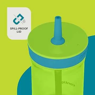 Contigo Kids’ Leighton Straw Tumbler with Spill-Proof Leak-Proof Lid, 14oz, Lime/Juniper