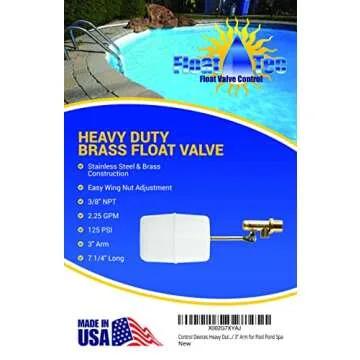 Show moreIntroducing the **Control Devices Heavy Duty Leveler Auto Fill Water Float Valve**, the ultimate solution for maintaining ideal water levels in your pool, pond, or spa. This innovative float valve features durable **brass and stainless-steel construction**, ensuring long-lasting performance and resilience against rust and corrosion. With a powerful flow rate of **2.25 GPM** and maximum pressure tolerance of **125 PSI**, this valve efficiently keeps your water feature topped up, so you can enjoy peace of mind while you relax. Its **8-inch canister compatibility** makes it a versatile option that easily replaces MP, Super Pro, and Pour-a-Lid auto fill systems. Designed for simplicity, this valve measures **7 1/4" long** and employs a **large wingnut for effortless adjustment**, allowing you to customize the water level to your preference with ease.