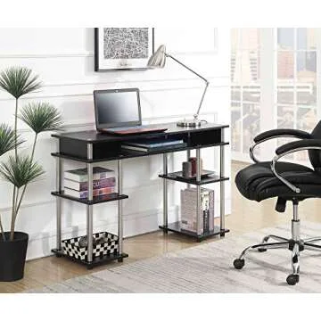 Convenience Concepts Designs2Go No Tools Student Desk 47.25" - Contemporary Office, Dorm Room Desk and Vanity with Storage Shelves, Black