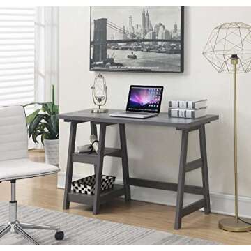 Convenience Concepts Designs2Go Trestle Desk with Shelves, 47", Charcoal Gray