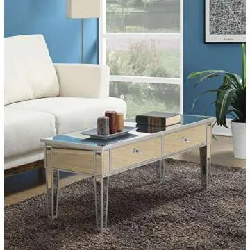 Convenience Concepts Gold Coast Mirror Coffee Table with Two Drawers, Mirror / Silver Frame