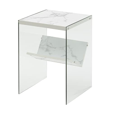 Show moreIntroducing the Convenience Concepts SoHo End Table, an elegant fusion of style and functionality that will elevate your home decor to new heights! Featuring a gorgeous faux white marble top paired with tempered glass sides, this end table is the ideal complement to any modern living space. Its sophisticated design doesn't just catch the eye; it enhances the aesthetic of any room while providing substantial durability and strength.