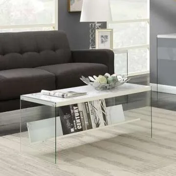 Convenience Concepts SoHo Glass Shelf Coffee Table, 40"L x 17.75"W x 17"H, Faux White Marble