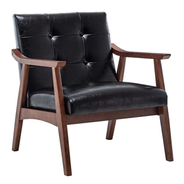 Show moreIntroducing the Convenience Concepts Take a Seat Natalie Accent Chair, a luxurious addition to any home decor. Expertly crafted, this stunning chair features a sophisticated black faux leather upholstery that seamlessly complements the rich espresso stained frame. Designed for both style and comfort, its soft foam cushions provide a plush seating experience, making it perfect for relaxing or entertaining. The button-tufting detail adds a touch of elegance, while the adjustable feet ensure stability on any floor surface. With dimensions of (L) 27.5 in. x (W) 28.5 in. x (H) 31.25 in., this chair is perfectly sized to fit in various living spaces, from cozy apartments to spacious homes.